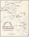 23. BRIGHT 25. POREPUNKAH 26. BUCKLAND VALLEY - continue until road narrows and starts to climb towards Mt. Selwyn. RETRACE route to Mount Beauty or return via Owens and Happy Valley. C. YACKANDANDAH, BEECHWORTH, ELDORADO - 4 hours.27. YACKANDANDAH - Bank of Victoria (Sundays and Public Holidays 2-5), Millfield Stables and Carriage Museum, Yackandandah Workshop. 28. ALLANS FLAT - Schmidts Strawberry Winery. 29. BEECHWORTH - Rockcavern, Powder Magazine, Carriage Museum, Star Youth Hostel, Ned Kelly's Cell, Burke Memorial Museum, Prison, Commercial Hotel, early miners collages, gallery. 30. GOLDEN HILLS TROUT FARM 31. WOOLSHED GOLDFIELDS - Old gold diggings, Kelly's Caves. 32. WOOLSHED FALLS - Picnic facilities, swimming. ELDORADO - Museum, St. Jude's Church, dredge and dredge hole. Return via TARRAWINGEE and MYRTLE FORD.